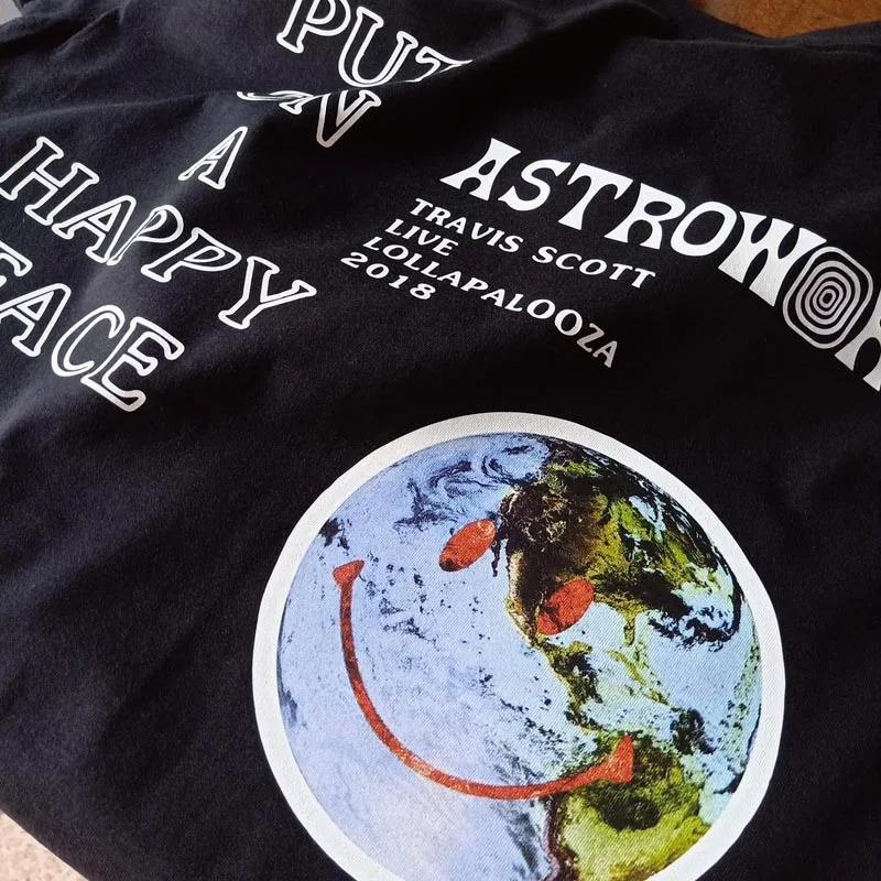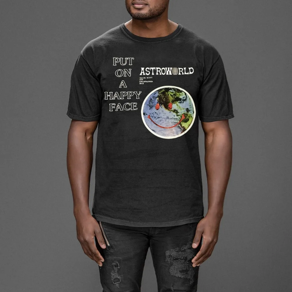 . (0% Off) Offerte Travis Scott Lollapalooza Astroworld Smiley T Shirt Del Mondo degli uomini e delle Donne del Cotone di Estate T Shirt Harajuku Hip Hop 2018 Miglior Prezzo Online.