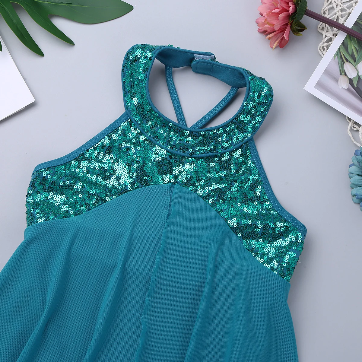 Special Offer Tiaobug Ragazze Halter Paillettes Backless Balletto di Danza Body Vestito Bambini Adolescenti Lyrical Moderno Costume di Ballo di Ginnastica Body Discount 35% Today!