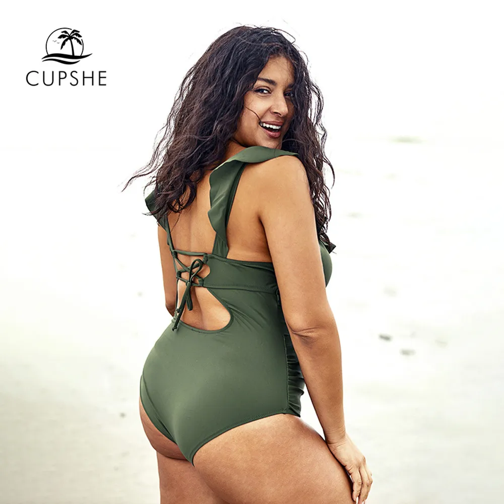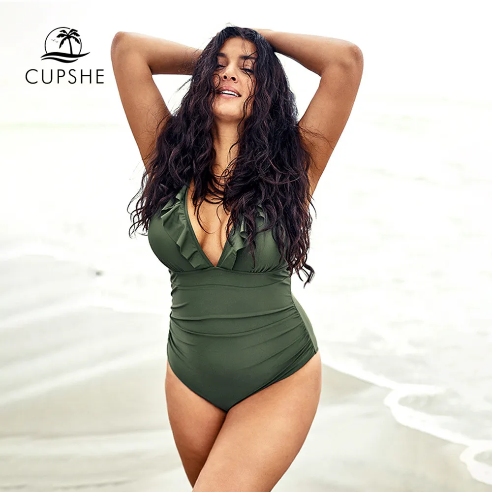 Special Offer CUPSHE Più Il Formato Verde Increspato Con Scollo A V di Un Pezzo del Costume Da Bagno Sexy Delle Donne Croce Monokini Costumi da bagno 2019 Della Ragazza Della Spiaggia Costumi Da Bagno Discount 42% Today!